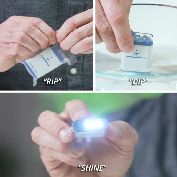 Hydracells koncept bygger på principen “RIP / DIP / SHINE” där allt du behöver göra är att öppna bränslecellens förpackning. Du doppar cellen i vatten och sen kan du använda din ficklampa. Dessutom över 25 års lagringstid om du inte aktiverar cellen!