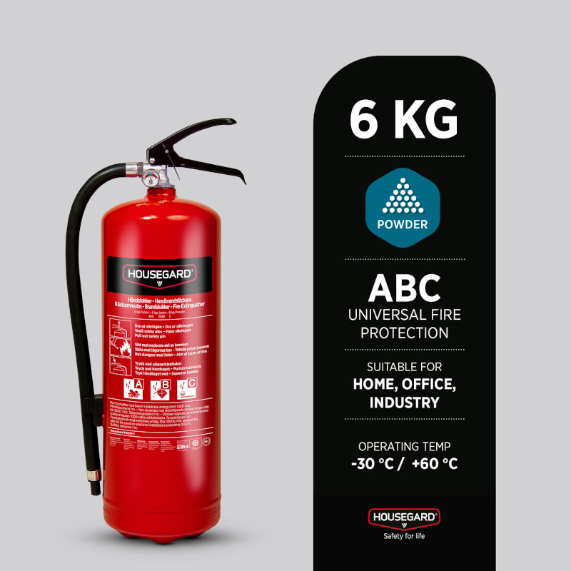 Brandsläckaren är fylld med ABC-pulver vilket gör den till den mest mångsidiga av brandsläckare. Den kan användas för släckning av nästan alla typer av bränder.