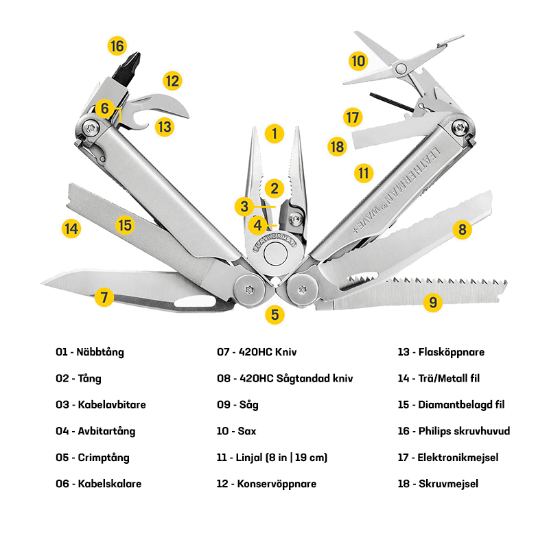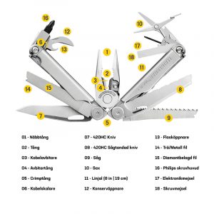 Stadigt Multiverktyg från välkända Leatherman i rostfritt stål som har allt du behöver och lite till.