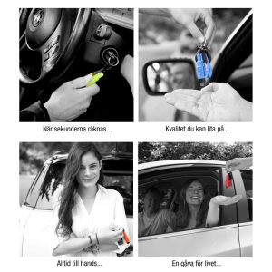 Med ResQMe nära till hands i bilen och/eller i nyckelknippan kan du rädda dig själv eller andra om olyckan skulle vara framme.