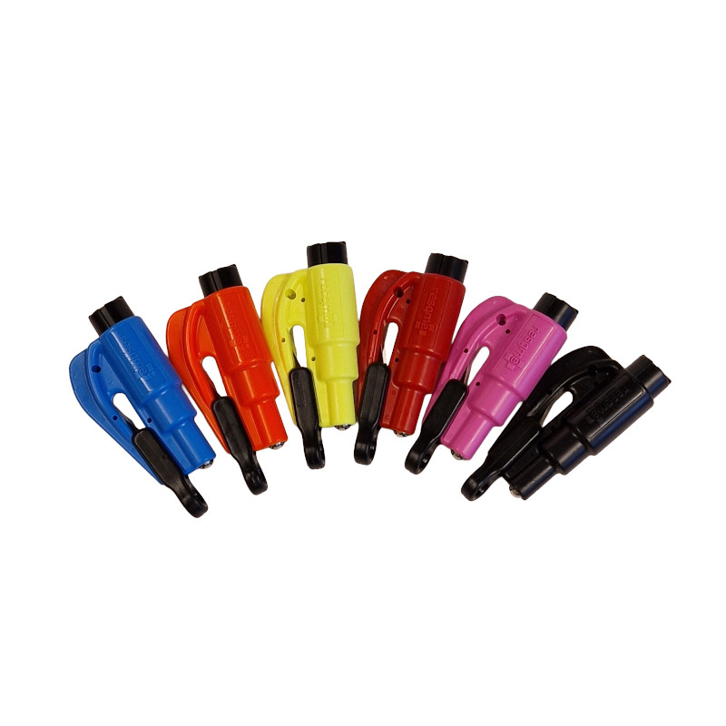 ResQMe har en krosspik för glasrutor och en bältesskärare.