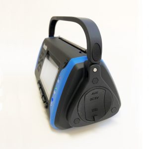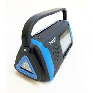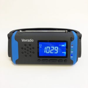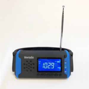 Vevradio med LCD-skärm. En bra sak att ha hemma vid en eventuell krissituation.